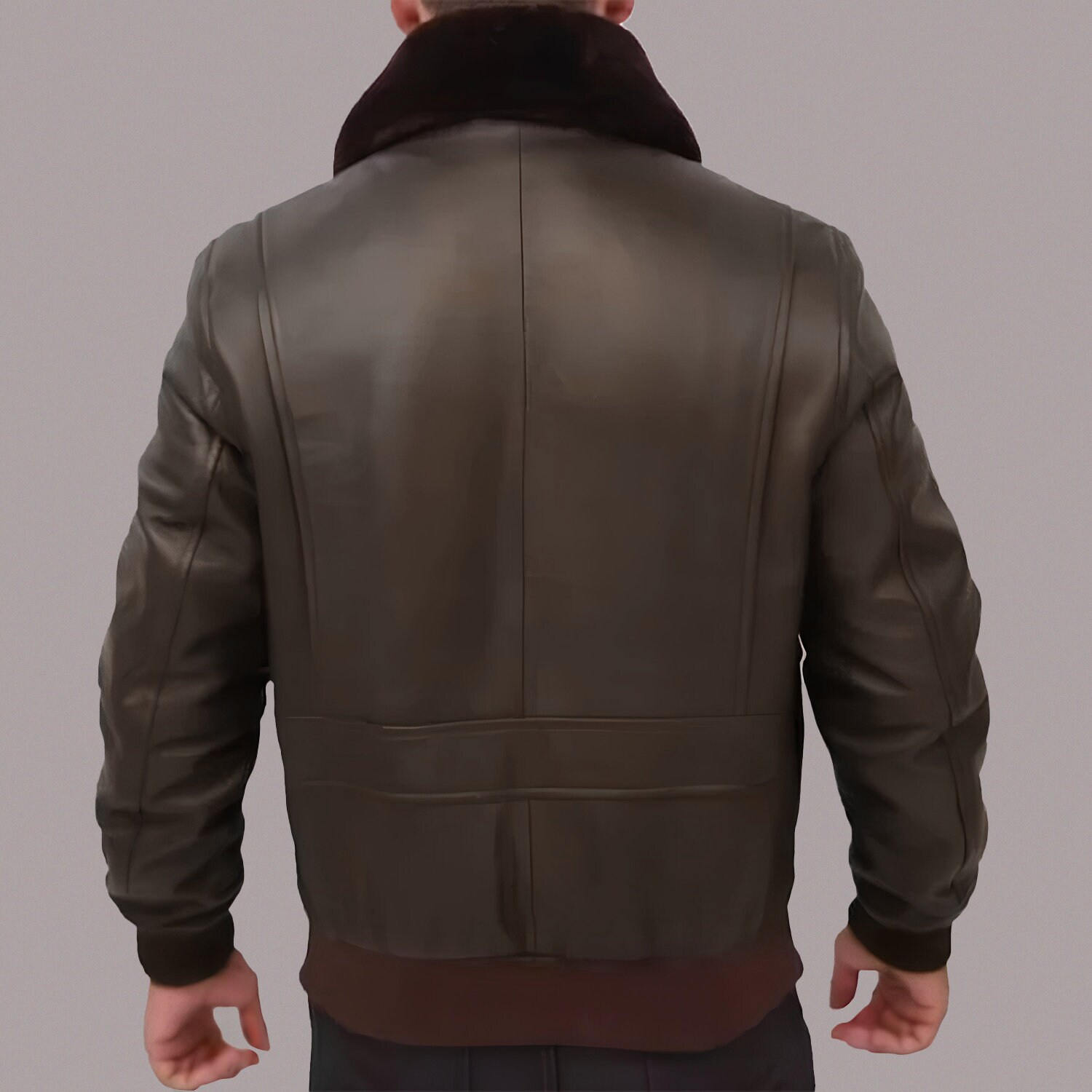 Shearling Collar: Real fur collar adds warmth and classic aviator appeal.