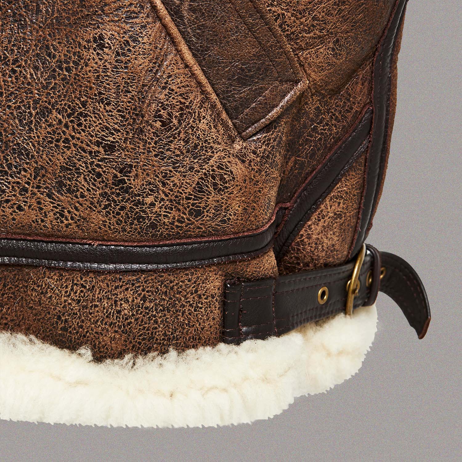 Crafted from genuine sheepskin leather with a distressed brown finish for a rugged and vintage appeal. -